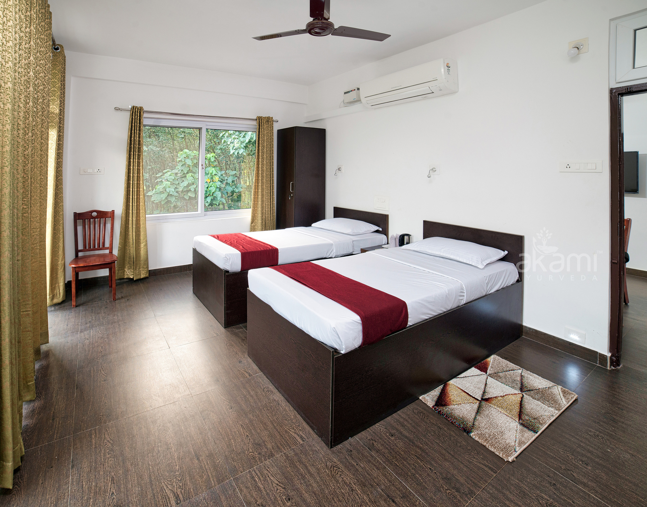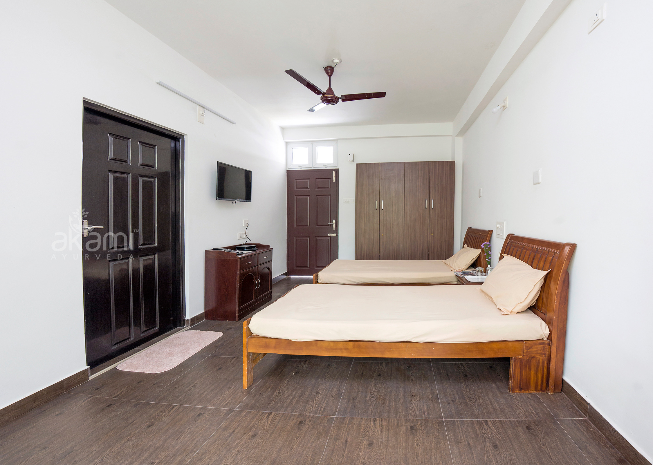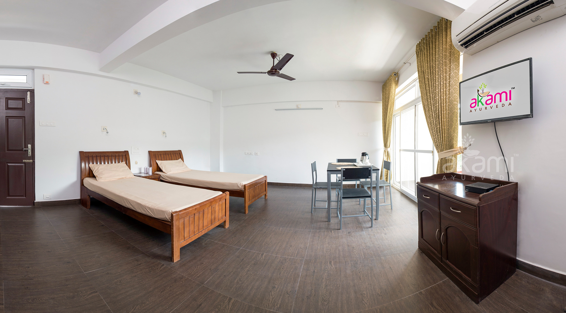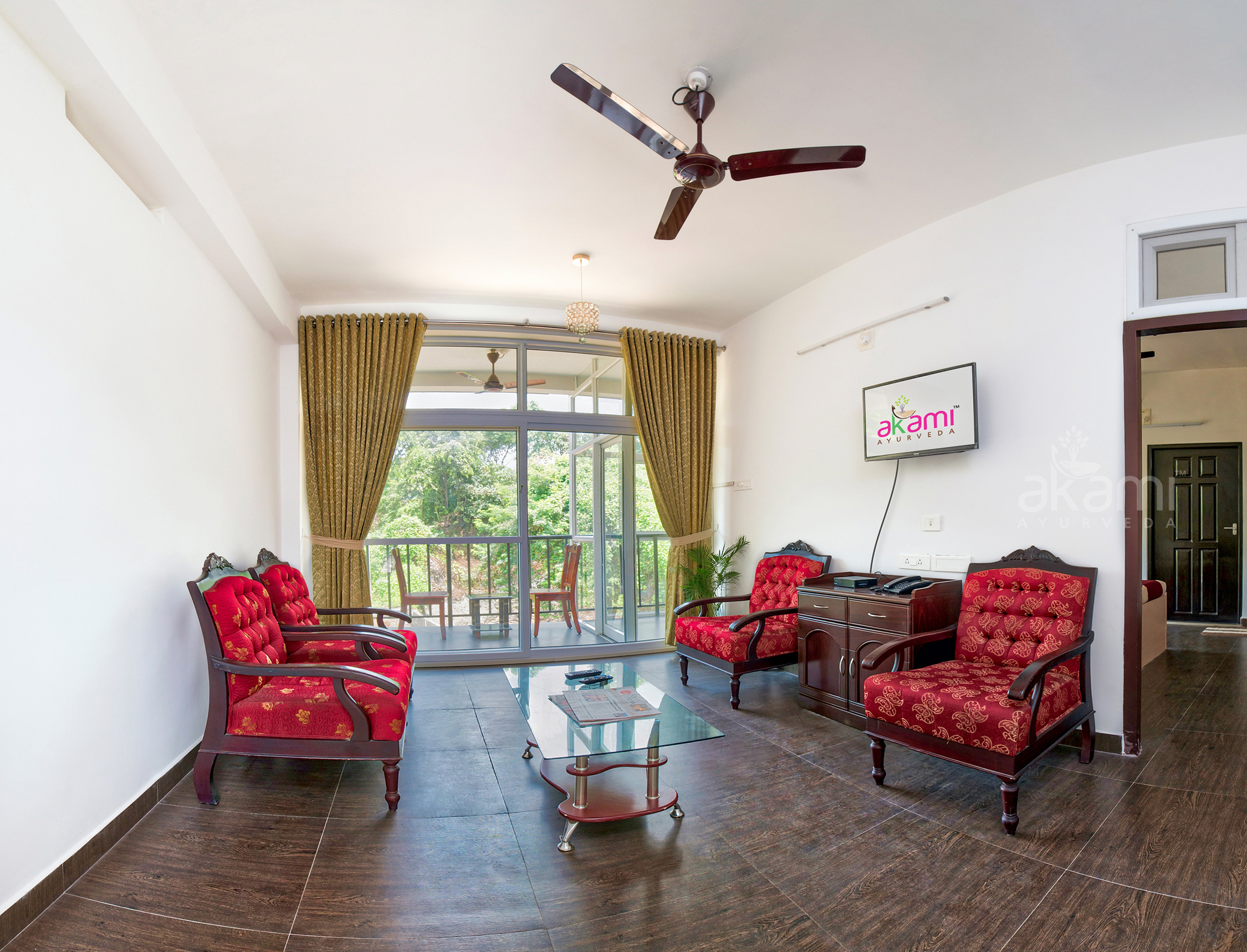 The Premium room is the last word in patient comfort. Each suite is laid out with a Living Room, Bed Room and Attached Treatment Room. A large bath room attached. A Television, Telephone, and a wardrobe available Special bed and a separate bed for the attendant.